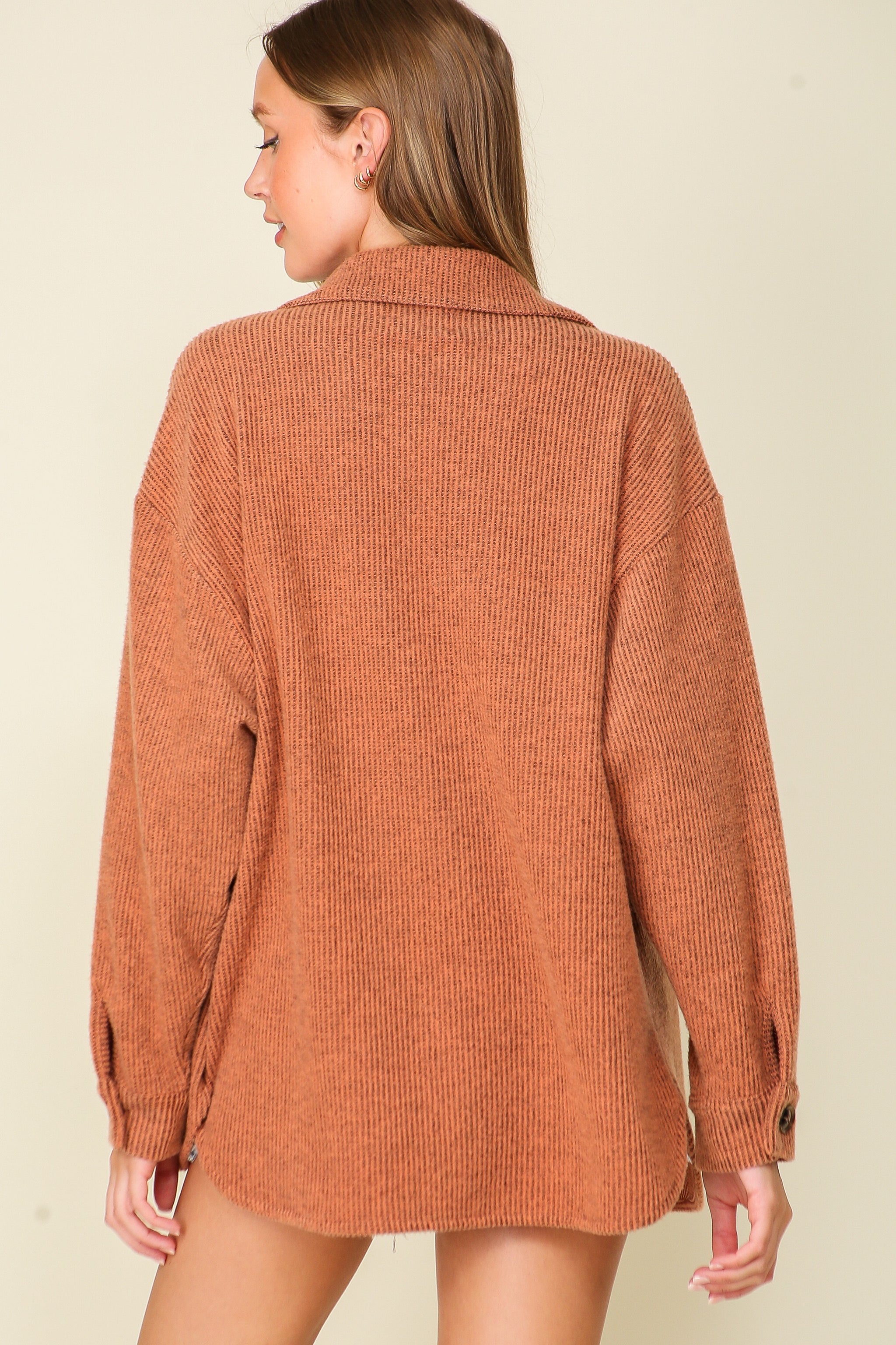 Stylish and cozy ensemble! A long-sleeved, button-down brushed waffle shacket that exudes warmth and sophistication. A front double-pocket casual jacket, perfect for on-the-go outings, completes the look. Don't miss this masterpiece and embrace effortless fashion. Layer over your favorite jeans for Thanksgiving get-togethers with family, Christmas parties, sweater weather, cozy season, winter, fall, date night, brunch, coffee runs, game day, tailgating, and apple picking.