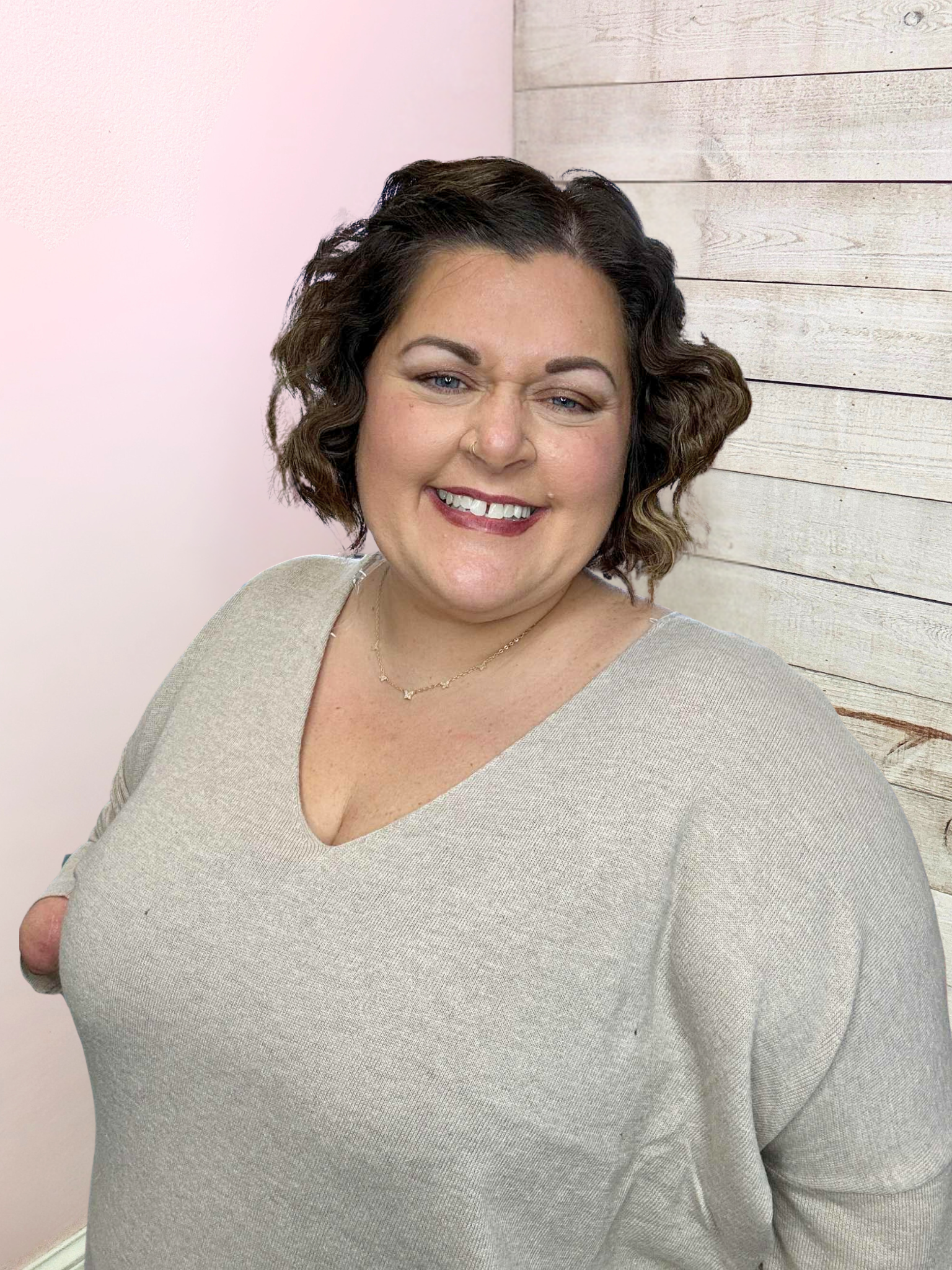 Heathered oatmeal lightweight sweater featuring a front and back V neckline, long dolman sleeves, and a curved high-low hemline.