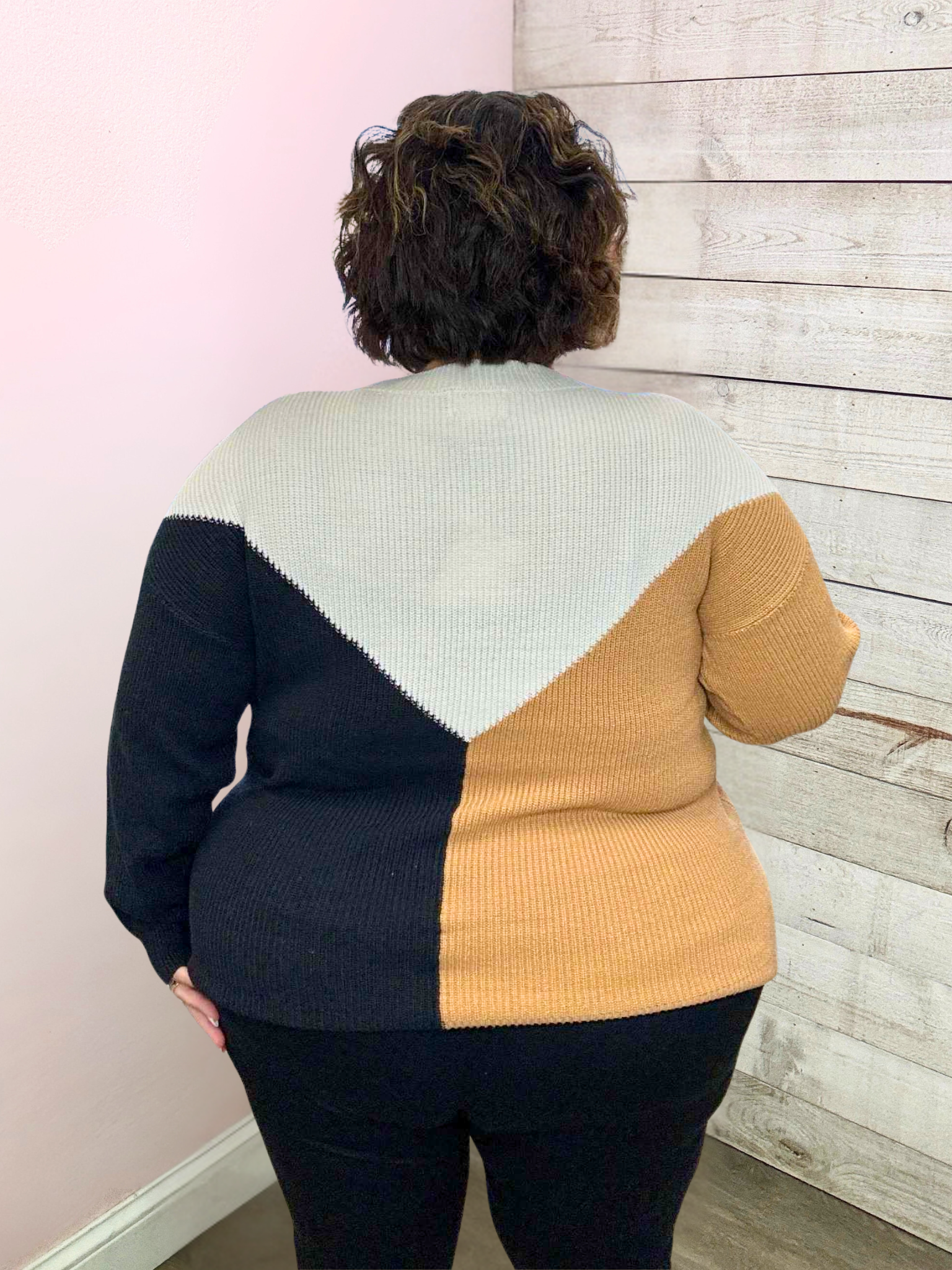 "All With Time" Ivory/Black/Brown Colorblock Sweater