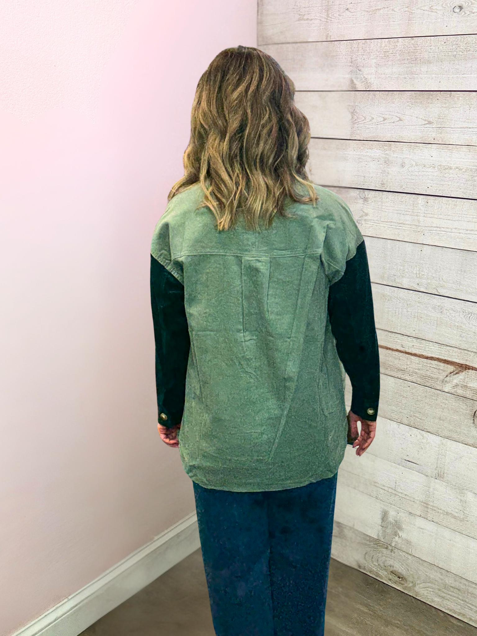 This splendid corduroy jacket is adorned with a daring color block design and equipped with practical front pockets. This delightfully versatile piece features a buttoned front and long sleeves, perfect for cooler weather. For a look that will turn heads, don this fashionable jacket and be the envy of all those around you.