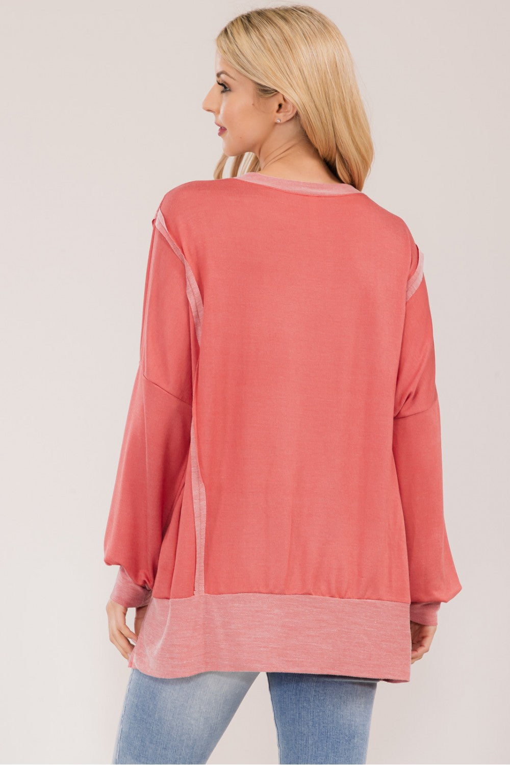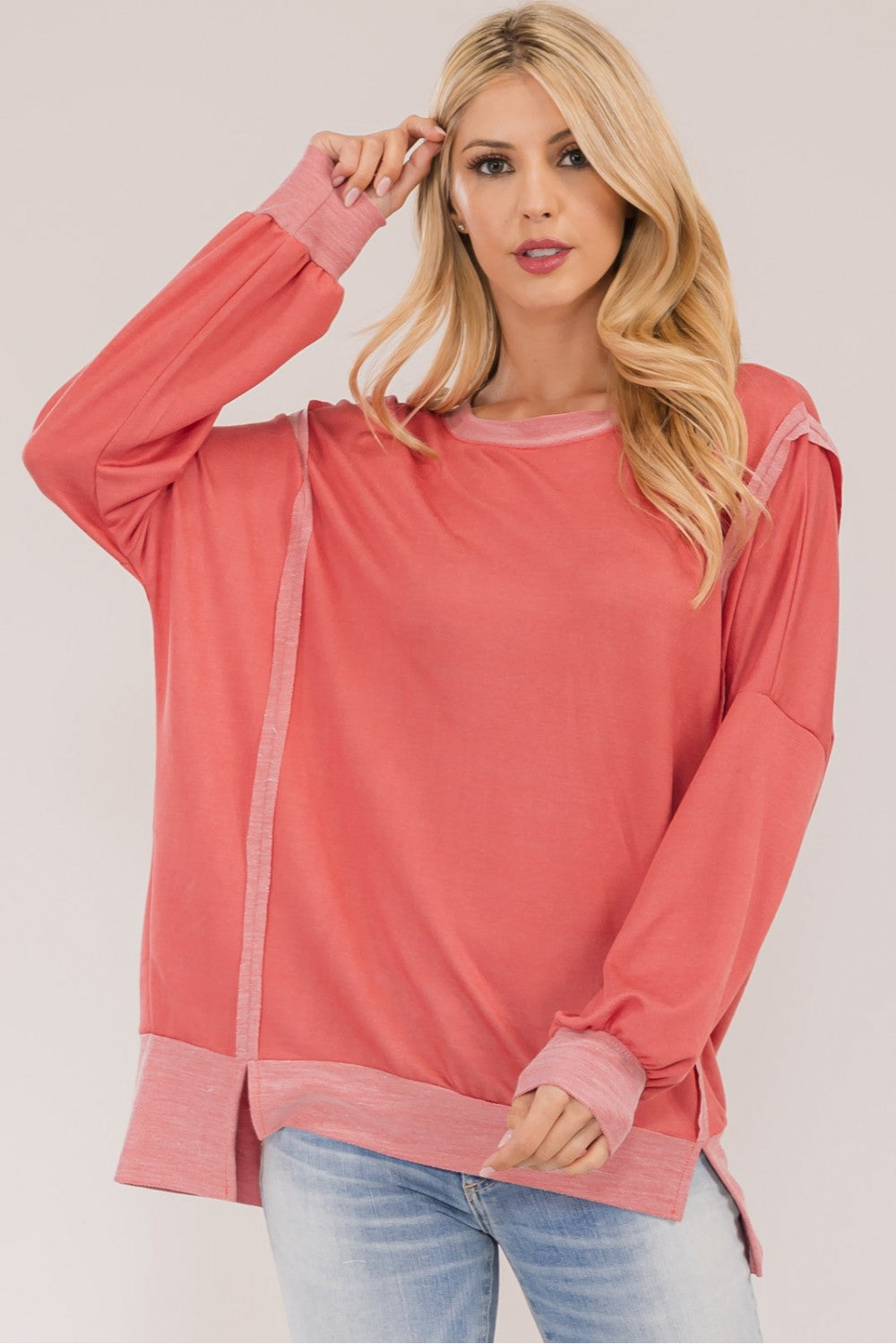 Experience effortless comfort and style with this oversized crewneck pullover top. Featuring a chic side slit and long cuff sleeves, this versatile piece is perfect for layering or wearing on its own. Its relaxed fit ensures all-day comfort, making it a must-have addition to your casual wardrobe.
