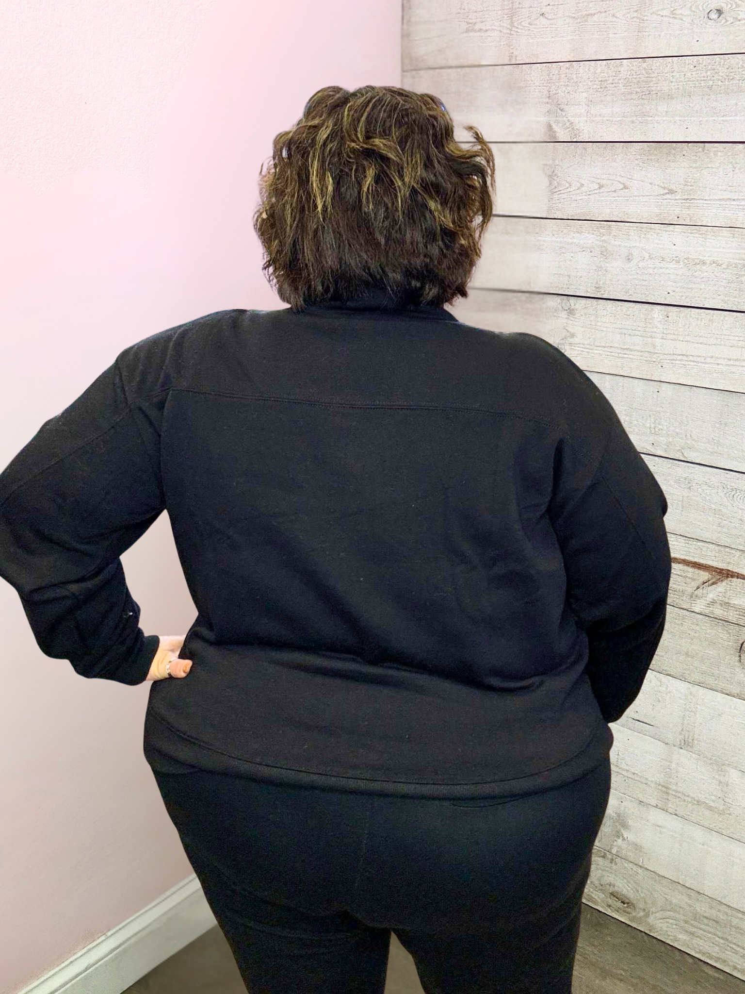 Solid fleece-lined top featuring a collared half zip neckline, long sleeves, and a straight hemline.
