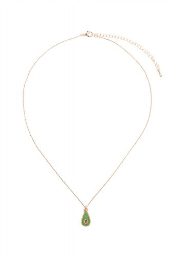 Green avocado epoxy pendant necklace on a 16" gold chain.