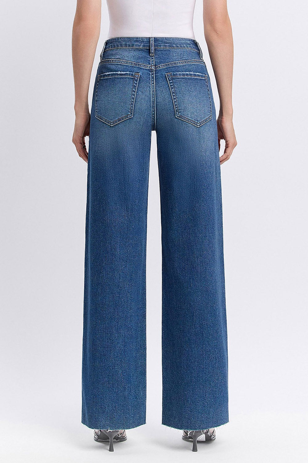 Lovervet high-rise wide jeans with a raw hem. NO distressing. Medium wash. Comfort stretch denim.